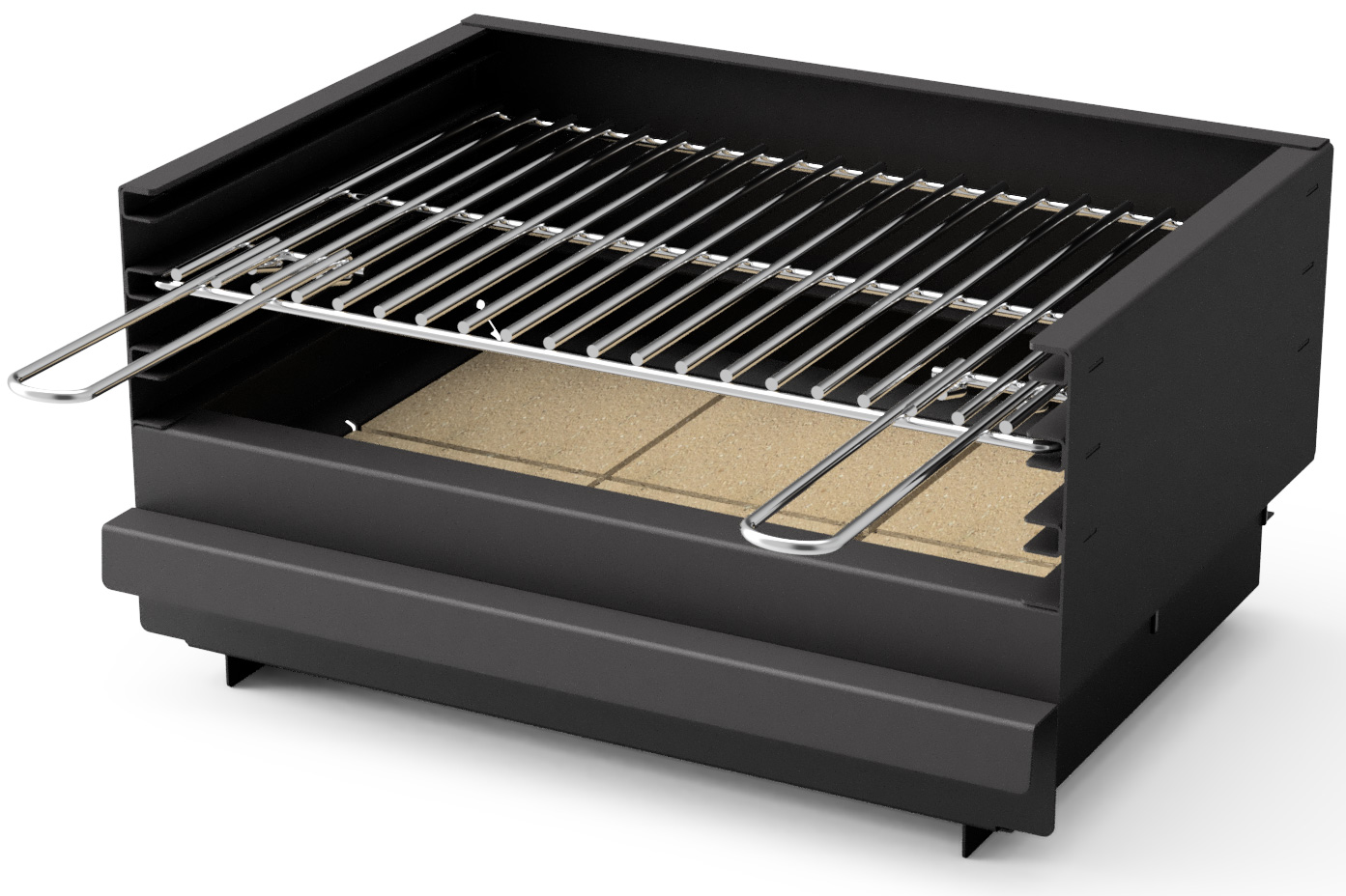 Numa churrasqueira com braseiro indicado para carvão, a grelha encaixa na churrasqueira porque as laterais são menores (o carvão não atinge temperaturas tão elevadas como a lenha). Neste tipo de braseiro encontra também, uma gaveta de cinzas. Saiba mais aqui.