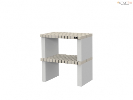 Esta bancada é comum às gamas Alvor e Ericeira da Collippo. A bancada Collippo possui ainda uma prateleira inferior em tijolo para arrumação de utensílios e/ carvão e lenha. O tijolo laranja/matizado destina-se apenas à gama Ericeira.