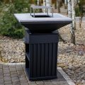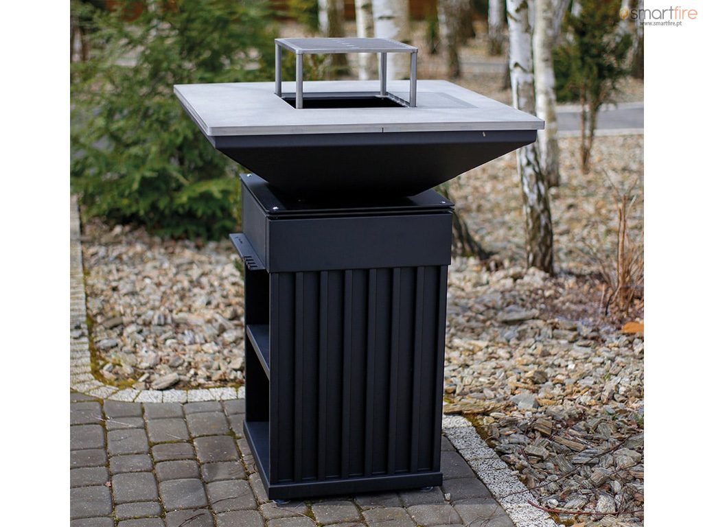 O Barbecue QUADRUM é um equipamento profissional em aço de excelente qualidade. Este grelhador/barbecue a lenha está equipada com grelha de aço inoxidável e práticos compartimentos de arrumação para utensílios e especiarias. Basicamente é um equipamento bastante versátil, um 3 em 1: firepit, plancha e grelhador.