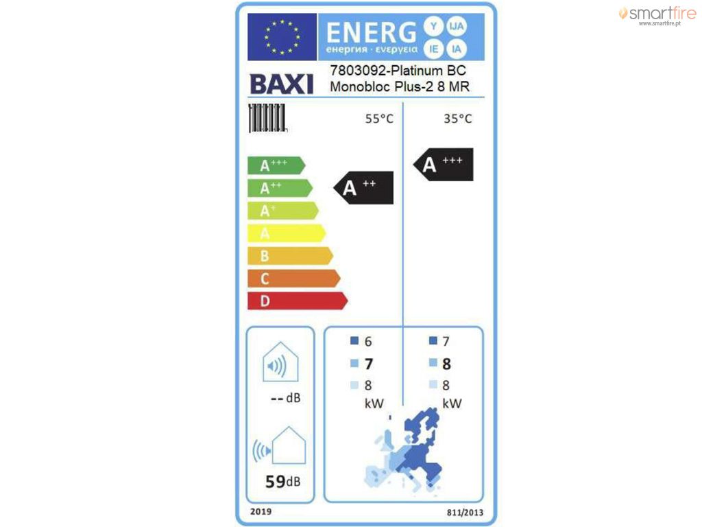 • Classe: A+++ (aquecimento 35ºC) / A++ Aquecimento 55ºC