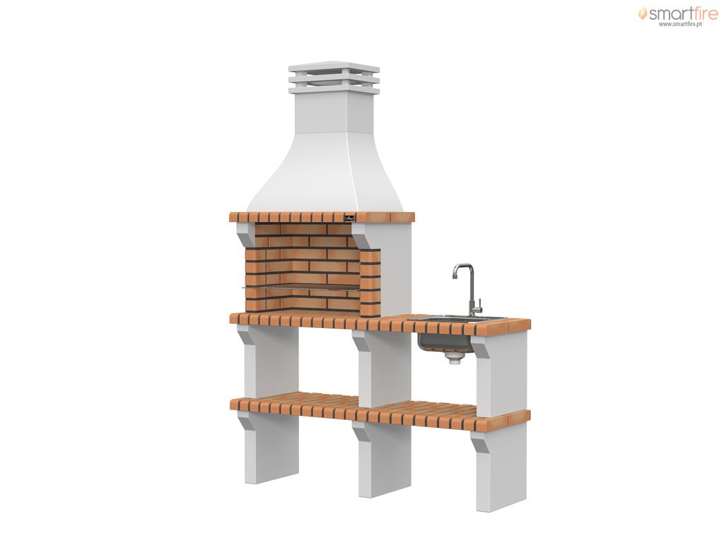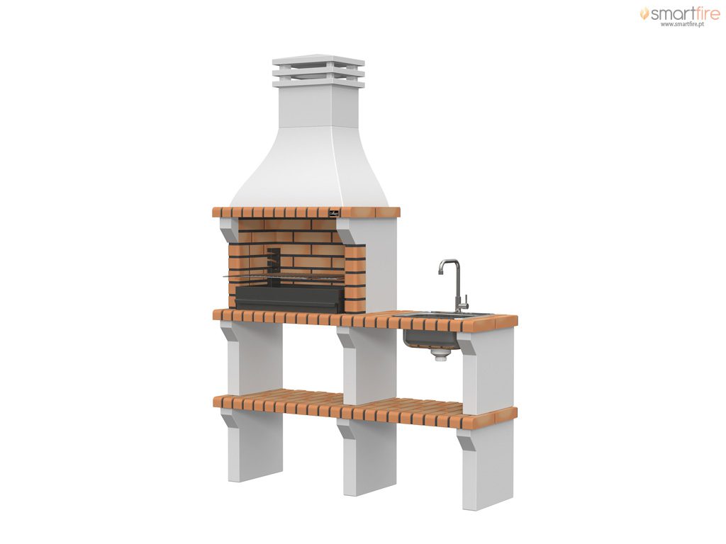 Pode optar por tijolo matizado ou branco. A churrasqueira é vendida em betão cinza, mas o cliente pode optar por pintá-la. Grelha apenas para usar carvão como combustível | Grelhador para carvão/lenha