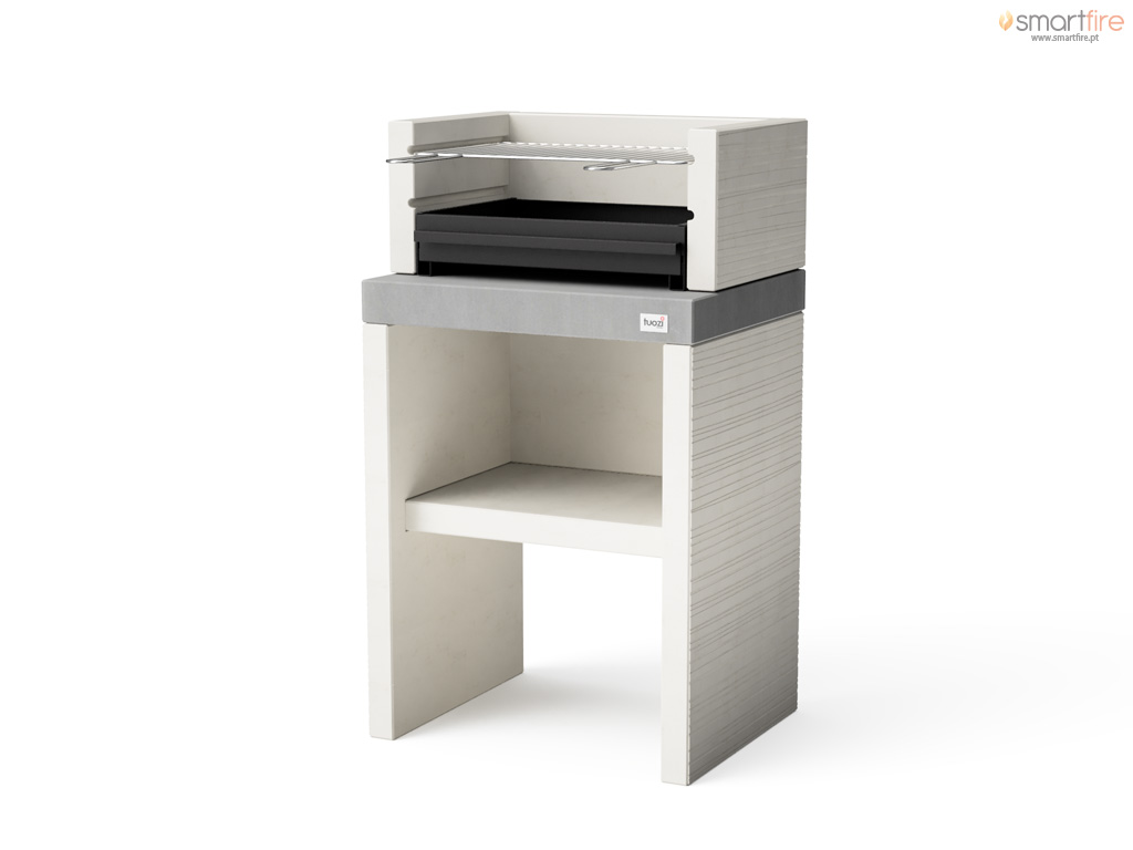 A Churrasqueira TUOZI Plan 0 Carvão é feita de betão branco e cinza com placa lateral texturada. A TUOZI Plan 0 Carvão inclui uma grelha metálica e braseiro. A TUOZI Plan 0 Carvão possui ainda uma prateleira inferior em betão branco.