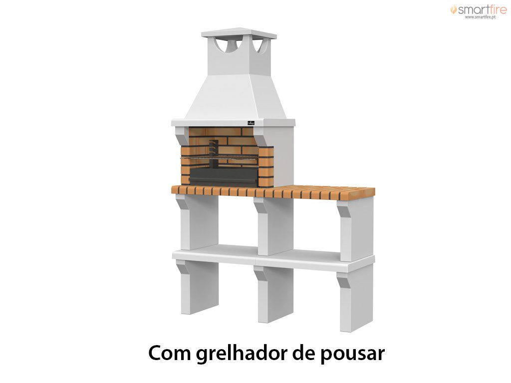 Com chaminé, para melhor extracção de fumos, a Collippo Sintra possui ainda uma prateleira inferior e uma bancada lateral para arrumação de utensílios e/ carvão e lenha. Opcionalmente, a churrasqueira Collippo Sintra pode incluir uma grelha simples, uma base rasa ou de um grelhador pousar (lacado), com gaveta para recolha de cinzas.