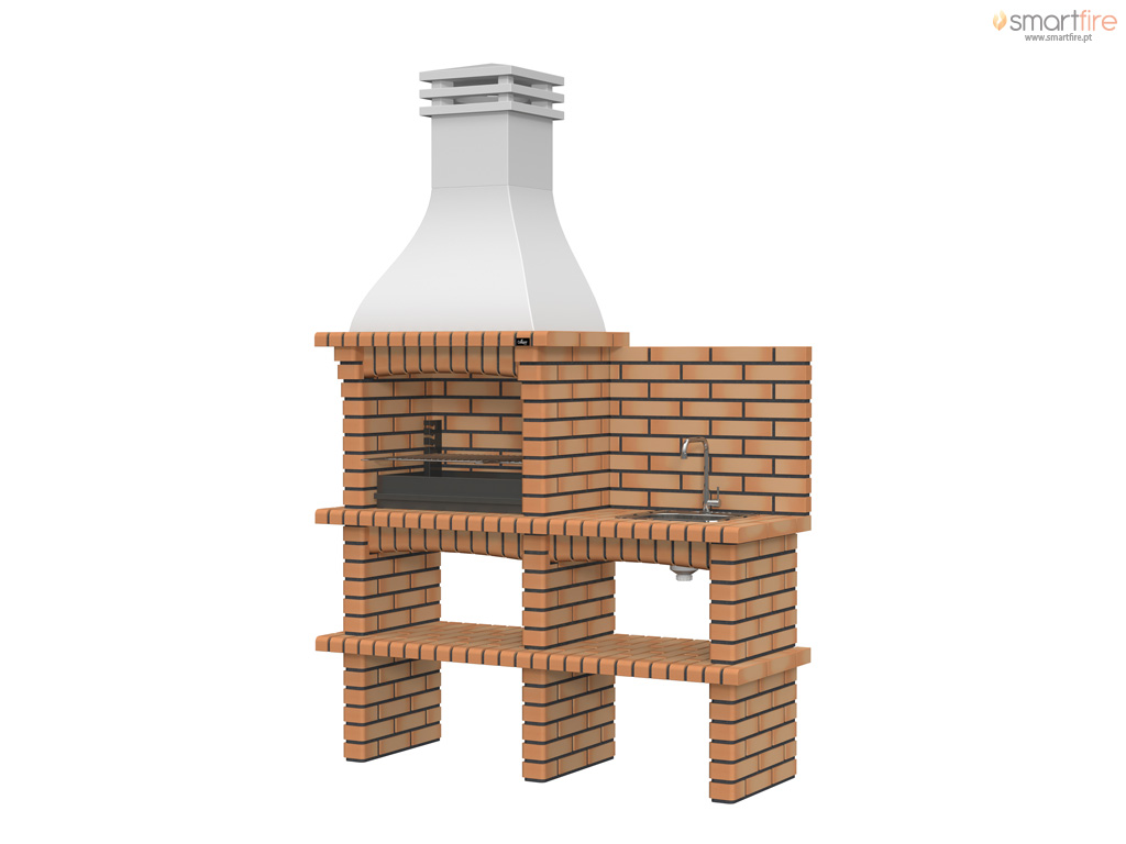A gama Tavira tem Chaminé em branco liso; zona de fogo em tijolo e cimento refractário. Com chaminé, para melhor extracção de fumos, a Collippo Tavira possui ainda uma prateleira inferior em tijolo para arrumação de utensílios e/ carvão e lenha. Inclui uma bancada lateral c/ lava-loiça que é uma óptima área de trabalho. Inclui um painel traseiro para proteger a parede de salpicos. Opcionalmente, a churrasqueira Collippo Tavira pode incluir uma grelha simples ou um grelhador de pousar com grelha e gaveta para recolha de cinzas.