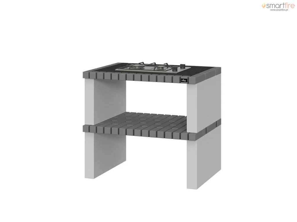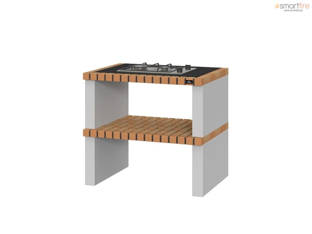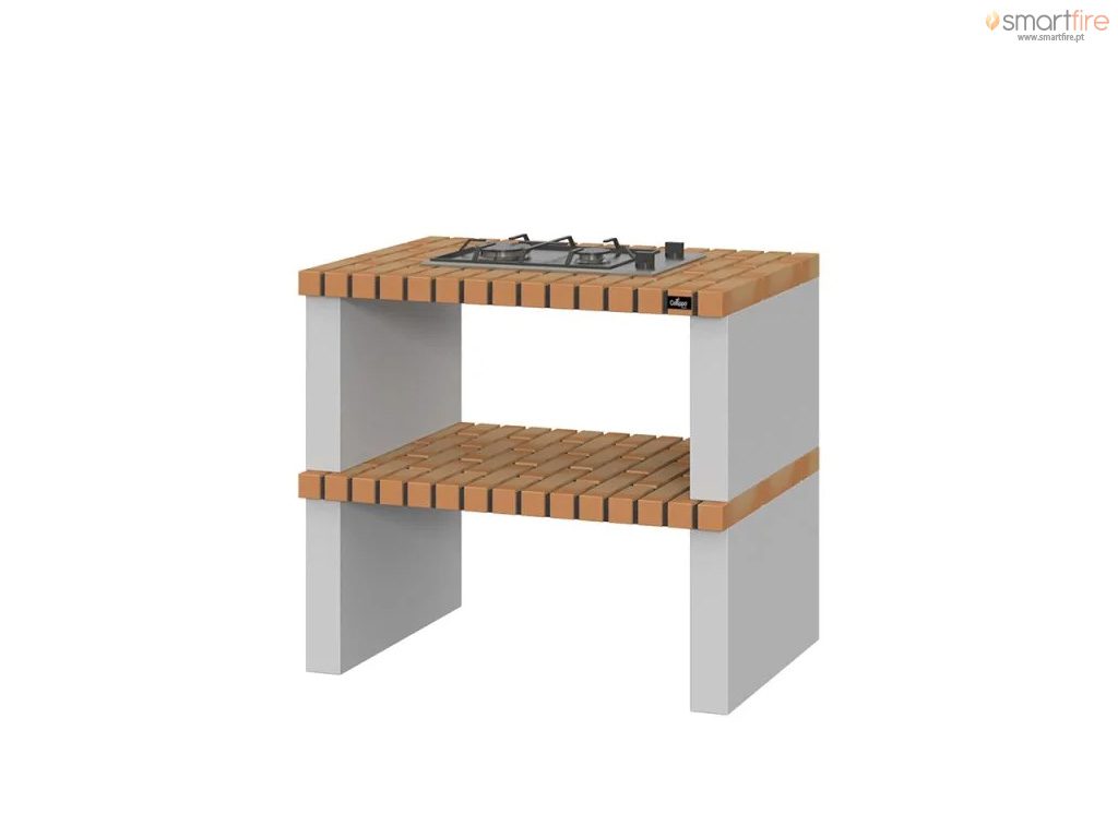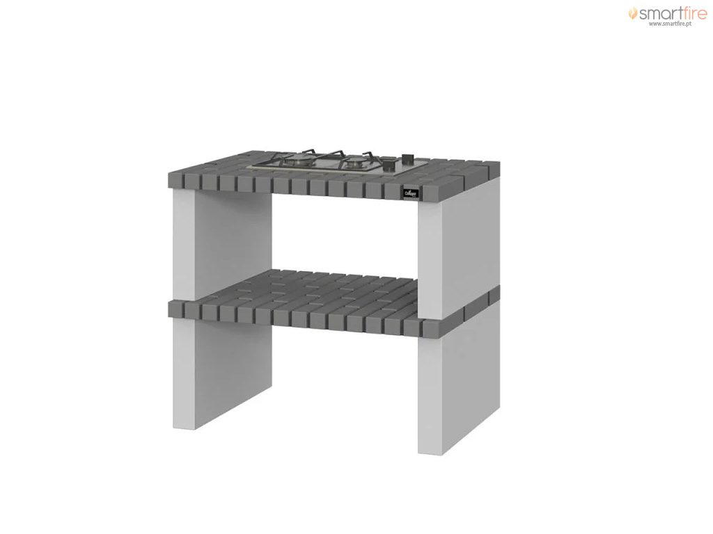 - Bancada em tijolo matizado/branco/cinzento com placa de gás (L x P x A): 93 x 58 x 83 cm | 260kg