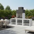 A Churrasqueira Vilamoura é fabricada em cimento branco liso, destacando-se pelas linhas modernas e pela grande grelha (70 x 40 cm). Com chaminé, para melhor extracção de fumos, a Collippo Vilamoura possui ainda uma prateleira inferior para arrumação de utensílios e/ carvão e lenha. Opcionalmente, a churrasqueira Collippo Vilamoura pode incluir um grelhador de pousar (lacado) ou em inox, com vários níveis de grelha, braseiro e gaveta para recolha de cinzas.