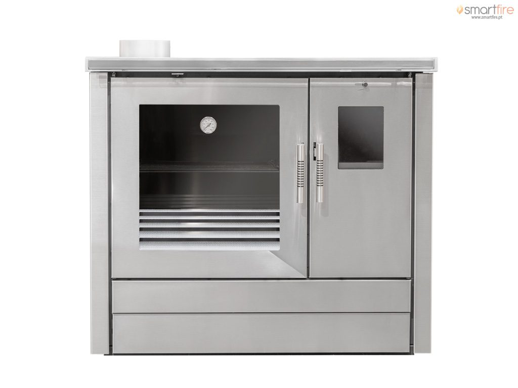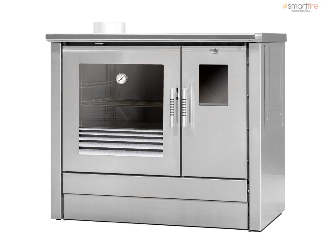 O ME16 Tropical Inox é um fogão a lenha com um design contemporâneo, a estrutura interna é fabricada em chapa de aço especial de 2mm, o forno em aço inox de 1,5mm e o tampo em tampo em aço-inoxidável de 5mm de espessura. A porta do forno e da fornalha tem um vidro de alta temperatura de 4mm de espessura com tratamento térmico até 900ºC. A câmara de combustão é revestida com tijolo refratário de alta densidade. Saída de fumos do lado direito ou esquerdo (opcional). Inclui um termómetro no forno e um varão frontal de proteção. É equipado com uma gaveta de arrumos com calhas