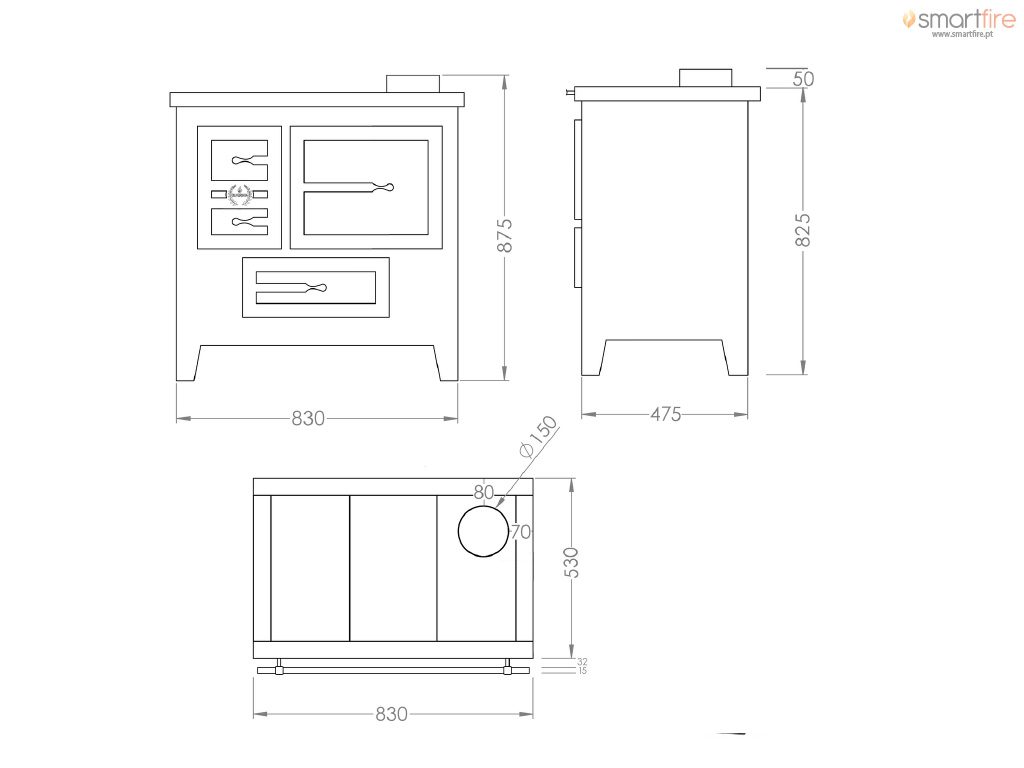 Saída de fumos: 150 mm
