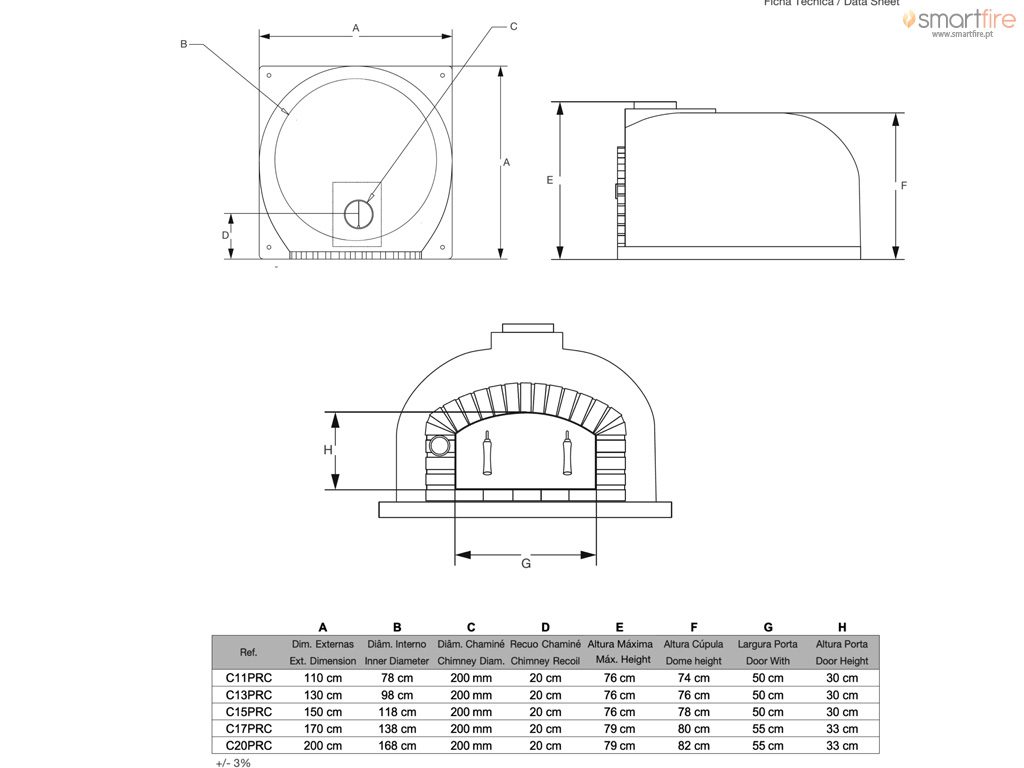 A solução profissional para uma utilização mais exigente e intensiva. Cúpula interior em tijolo altamente refractário, permite um aquecimento mais rápido e uma manutenção da temperatura por mais tempo graças ao isolamento multicamada reforçado. Tamanhos exteriores desde 110 cm e até 200 cm. Acabamento em cortiça projetada. Porta solta em ferro e termómetro bi-metálico em aço inox. Pegas em madeira.