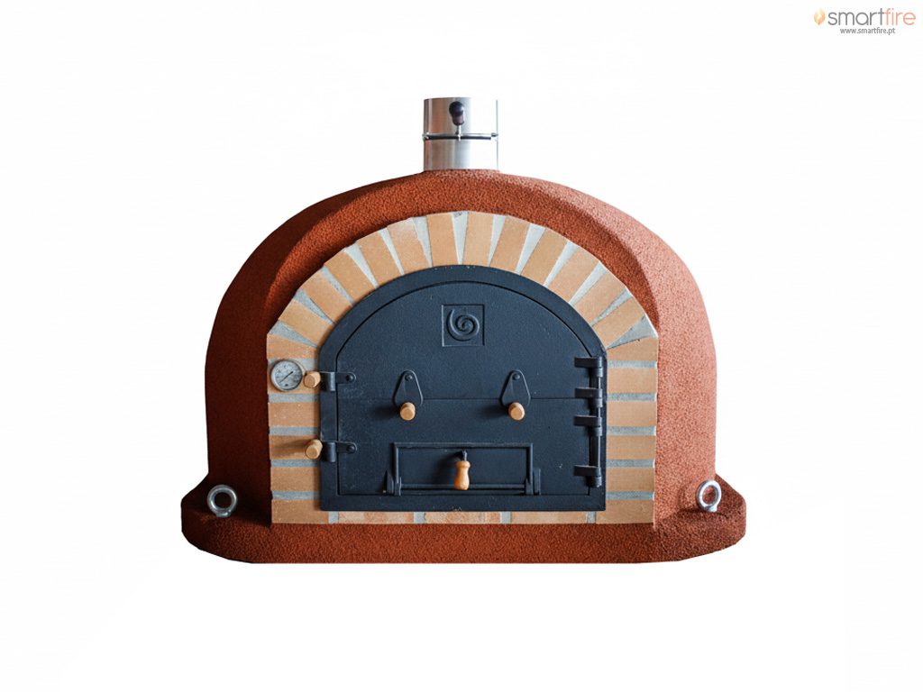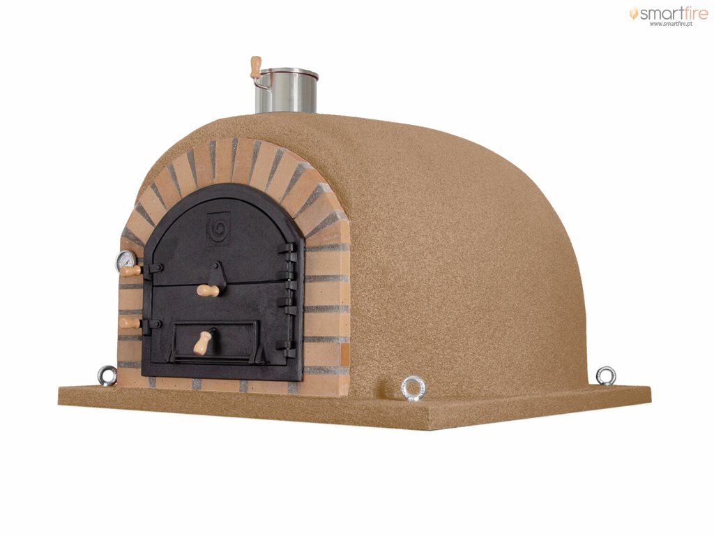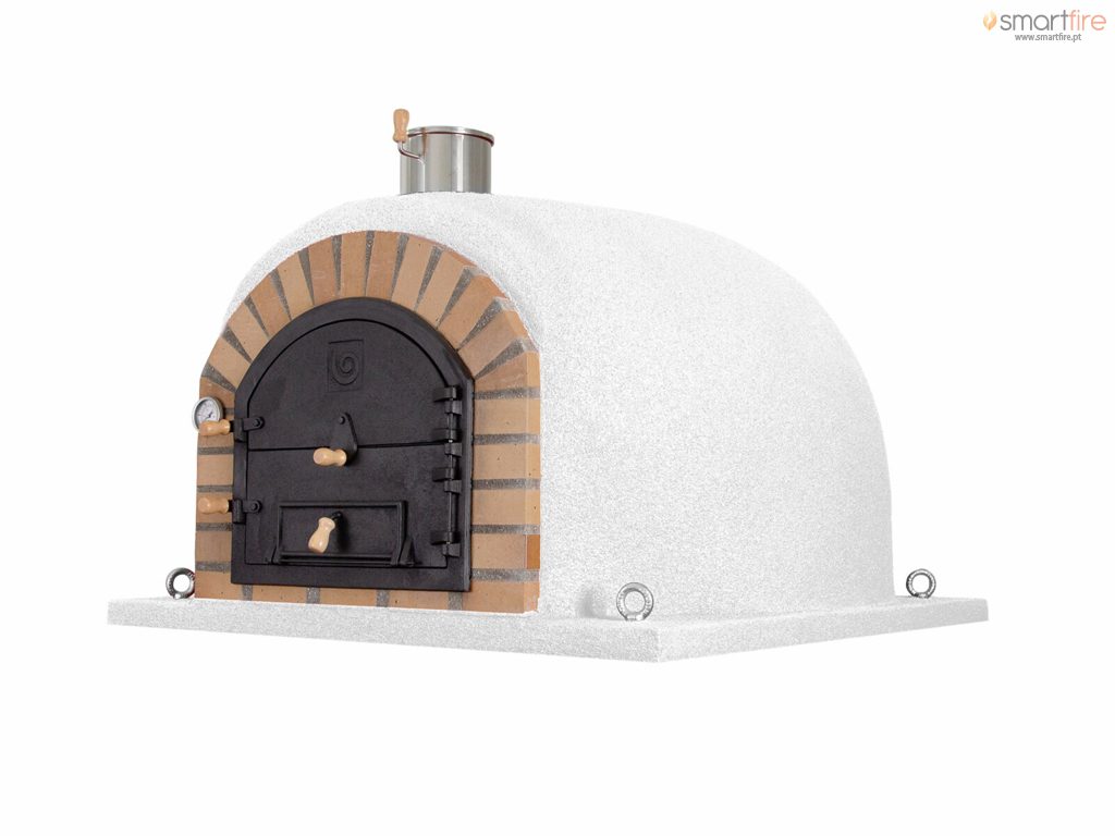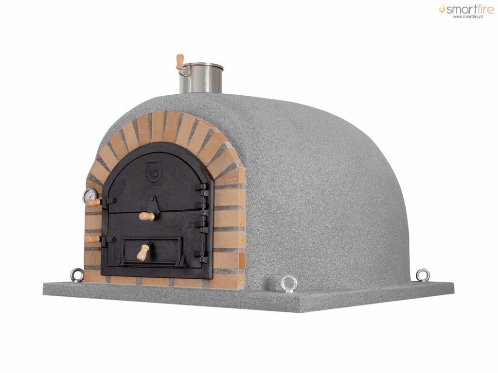 O forno a Lenha Mediterrânico Royal destaca-se porta dupla em ferro fundido para maior durabilidade e resistência, com chaminé e registo de fumos. Para além de pizzas, pão, assados, etc, a porta dupla permite confecionar os tradicionais pratos no espeto. Transforme o seu pátio ou jardim na derradeira experiência da cozinha mediterrânica.