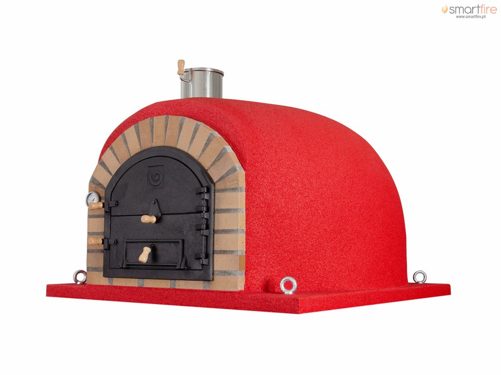 O tradicional conceito de Forno a Lenha Mediterrânico, com o Forno em Barro Horácio isolado com manta de fibra cerâmica e argila expandida.