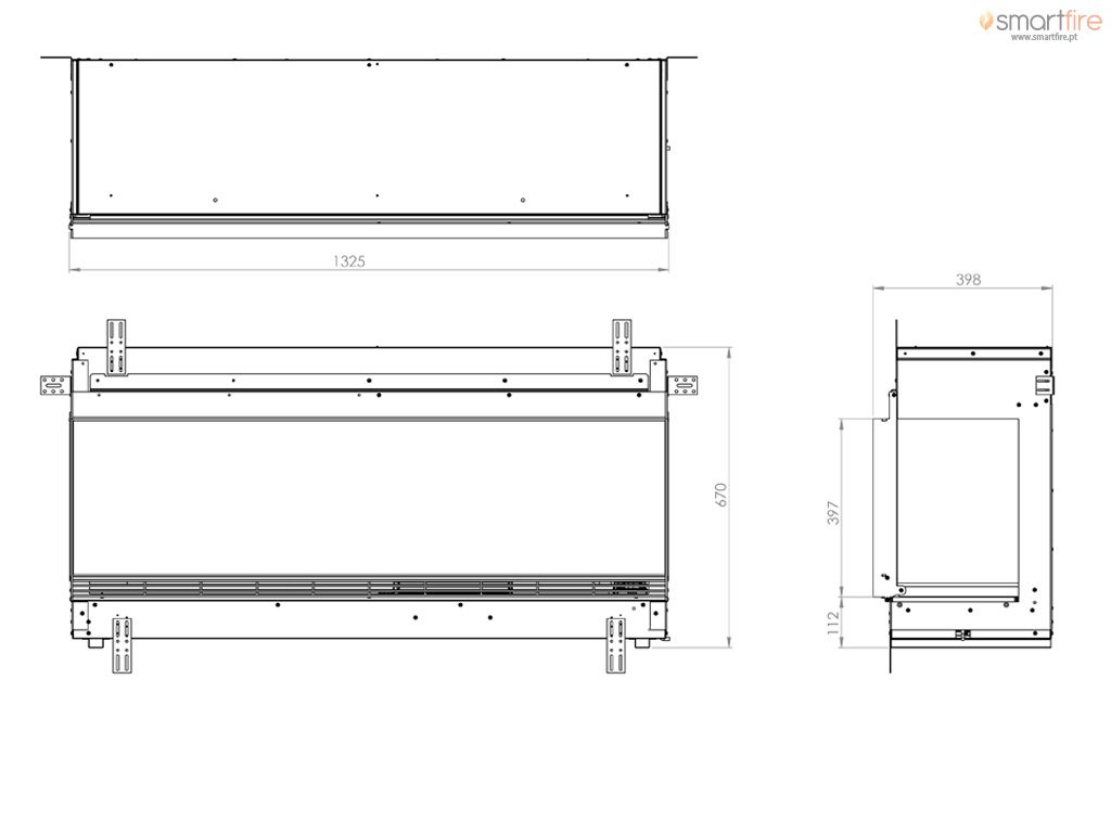 - Perfil fino para fácil instalação com grande janela de visualização para uma experiência de incêndio envolvente.