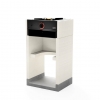 A gama TUOZI Venit Flex é feita de betão branco e cinzento, liso com faces exteriores texturadas, possui ainda uma prateleira inferior em betão branco liso.