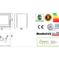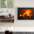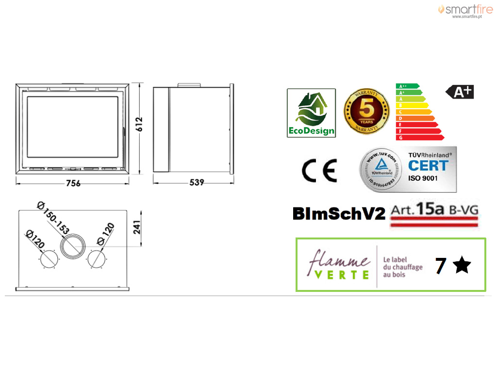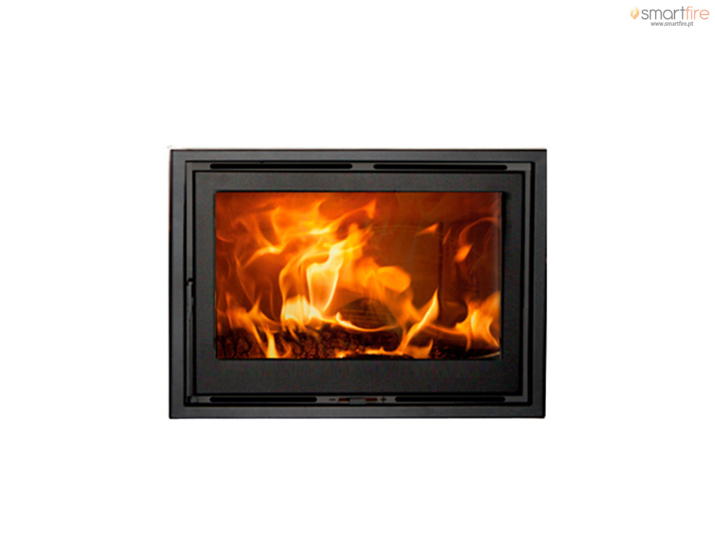 Recuperador a lenha (com ventilação) num estilo moderno e conforme as normas de Ecodesign. O seu design é ideal para salas maiores (612x756x539 mm). Tem um volume de aquecimento de 300 m3 e uma potência térmica de 9,8 KW. Capacidade para lenha até 60 cm, o que acrescenta funcionalidade. Porta e grelha em ferro fundido. Sistema de vidro limpo e vista panorâmica, permitindo uma visão máxima do incêndio. Câmara de combustão revestida a vermiculite para maior potência. Tripla combustão e triplo corpo de aço.