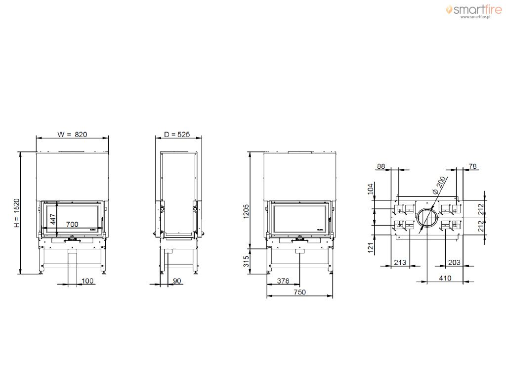 Medidas da câmara de combustão (altura x largura x profundidade): 34 x 60.5 x 35 cm