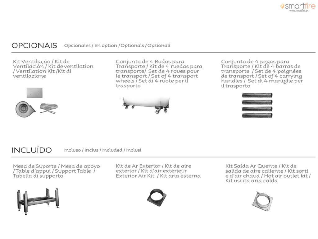 Inclui Mesa, 8 x golas de saída de ar quente e 1 gola de entrada de ar exterior