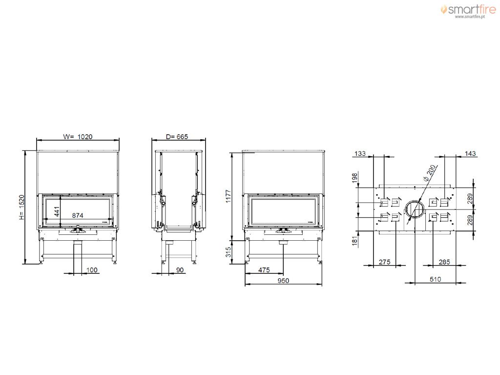Medidas da câmara de combustão (altura x largura x profundidade): 34 x 80 x 35 cm