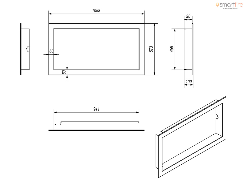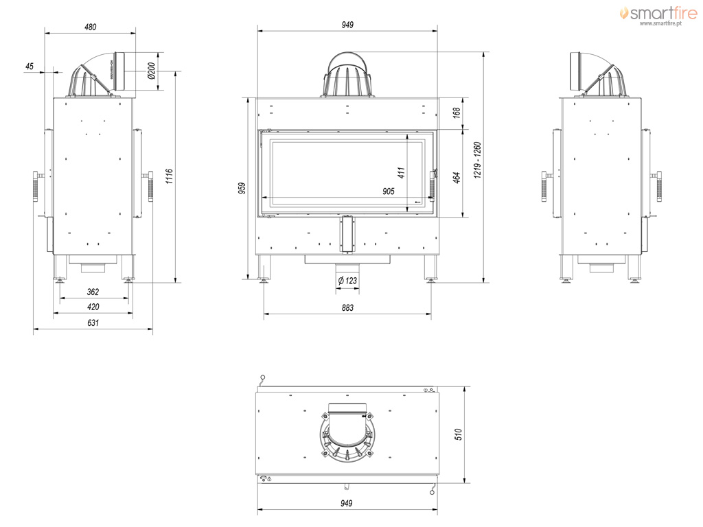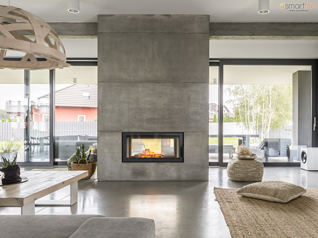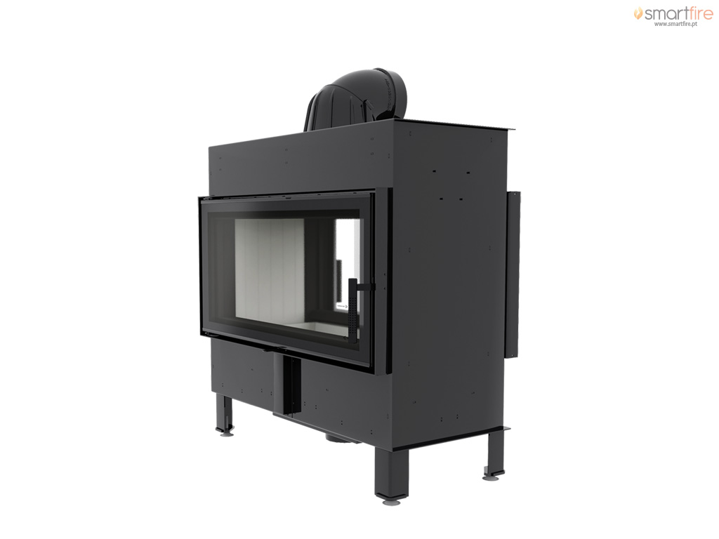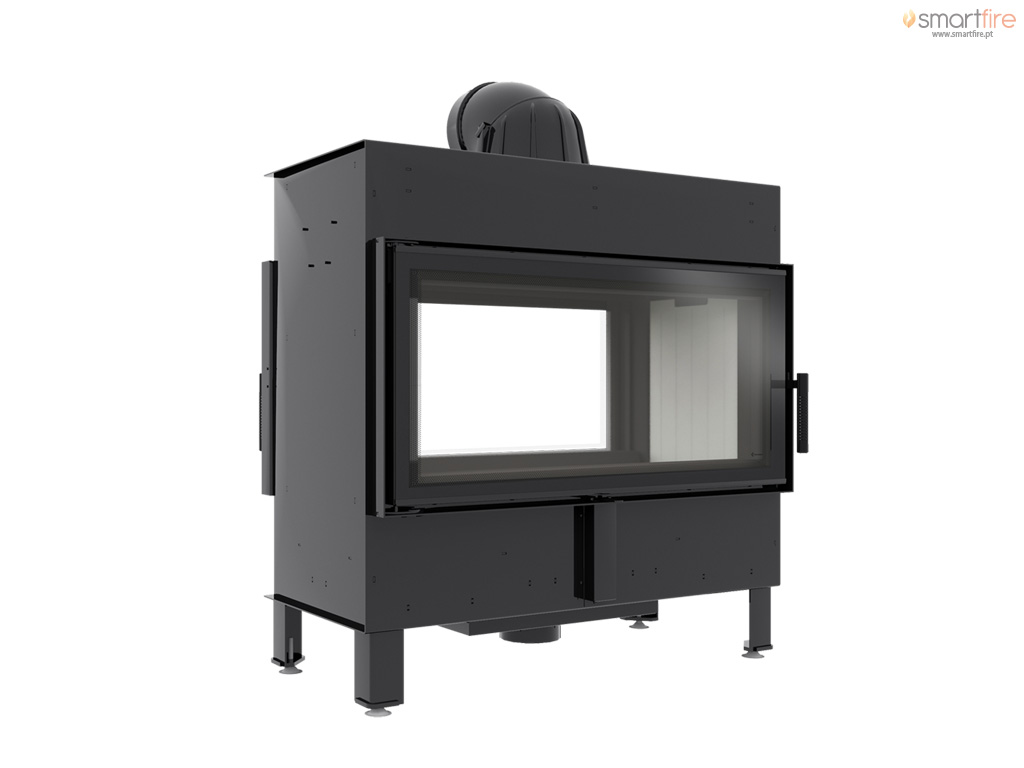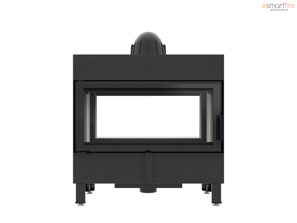 - Painel de vidro serigrafado com temperatura até 660°C, que confere à lareira um aspecto moderno e elegante, amplia opticamente a parte frontal do recuperador.