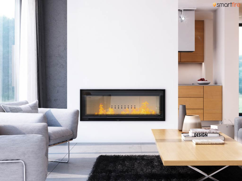 - Painel de vidro decorativo com temperatura até 660°C, que confere ao recuperador um aspecto moderno e elegante, amplia opticamente a parte frontal do recuperador.