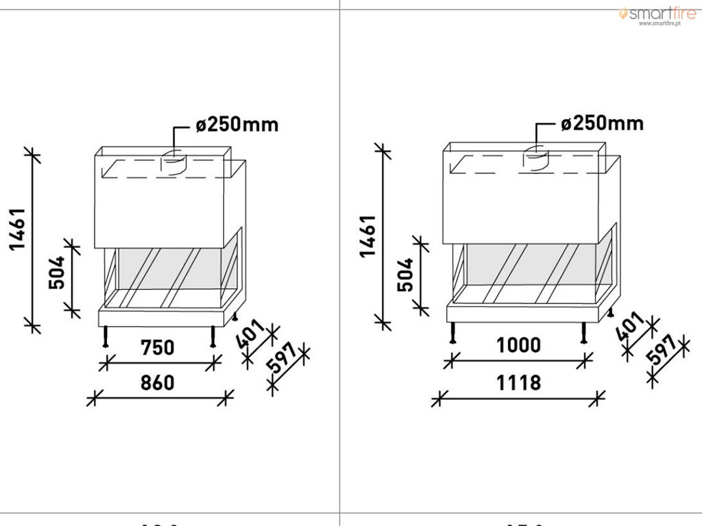 Diâmetro da chaminé: 250 mm