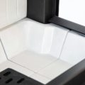 - Perfis em aço: Adicionam elegância e estilo moderno à lareira, realçando a sua aparência única. Esquinas do recuperador protegidas por perfis em aço antracite.
