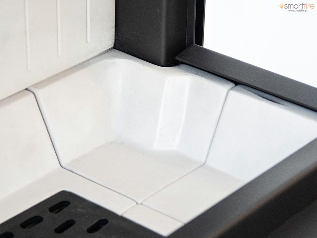 - Revestimento TERMOTEC: Material acumulador de calor que aumenta a temperatura no interior, prolongando o aquecimento mesmo após a extinção do fogo. Disponível nas cores branco ou preto.