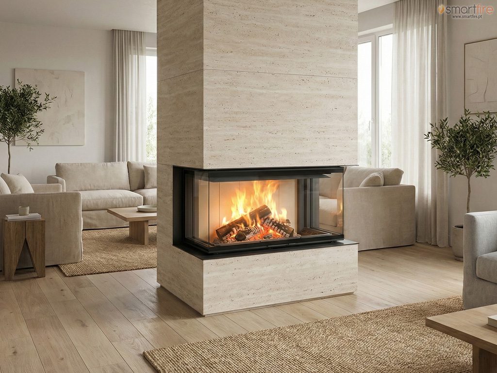 Imagine-se numa noite tranquila, sentado no sofá enquanto observa as chamas através dos seus três vidros. A luz quente que preenche a divisão, o som suave da lenha a arder, o calor que envolve o espaço — tudo isto cria uma atmosfera de bem-estar que transforma cada momento num ritual de conforto.