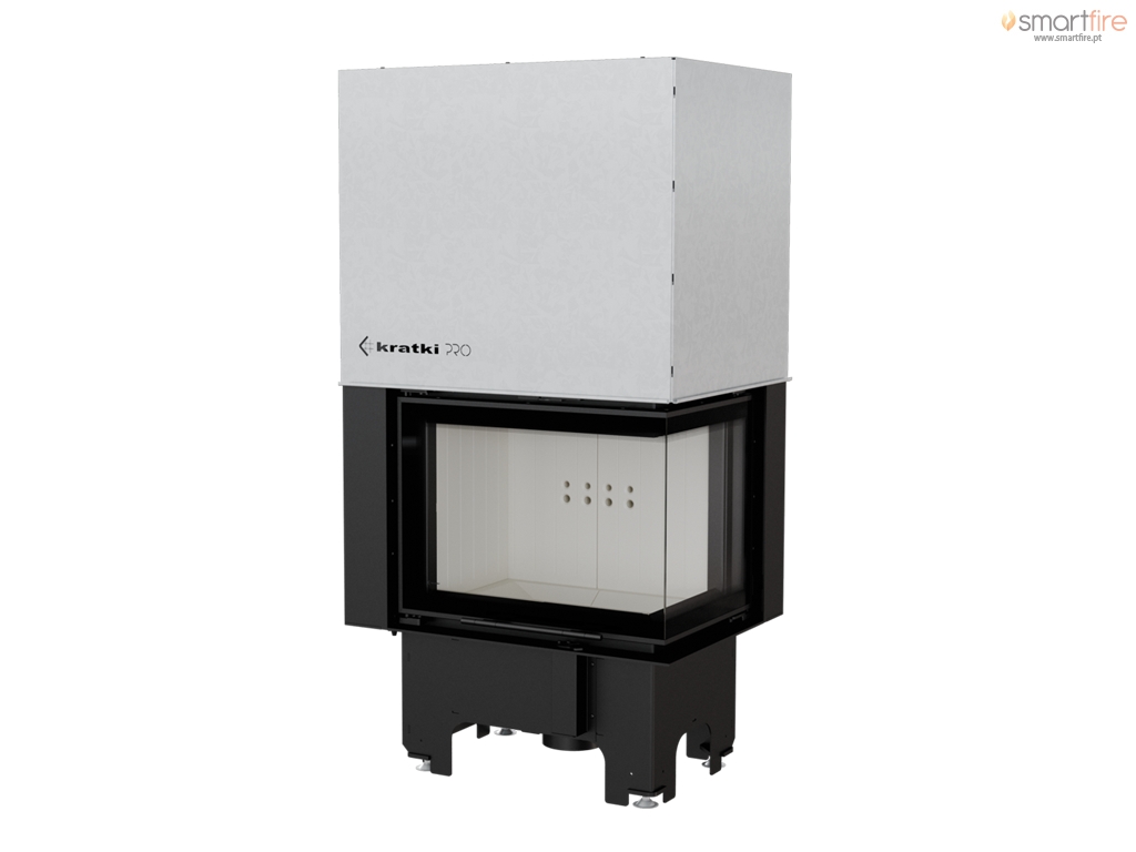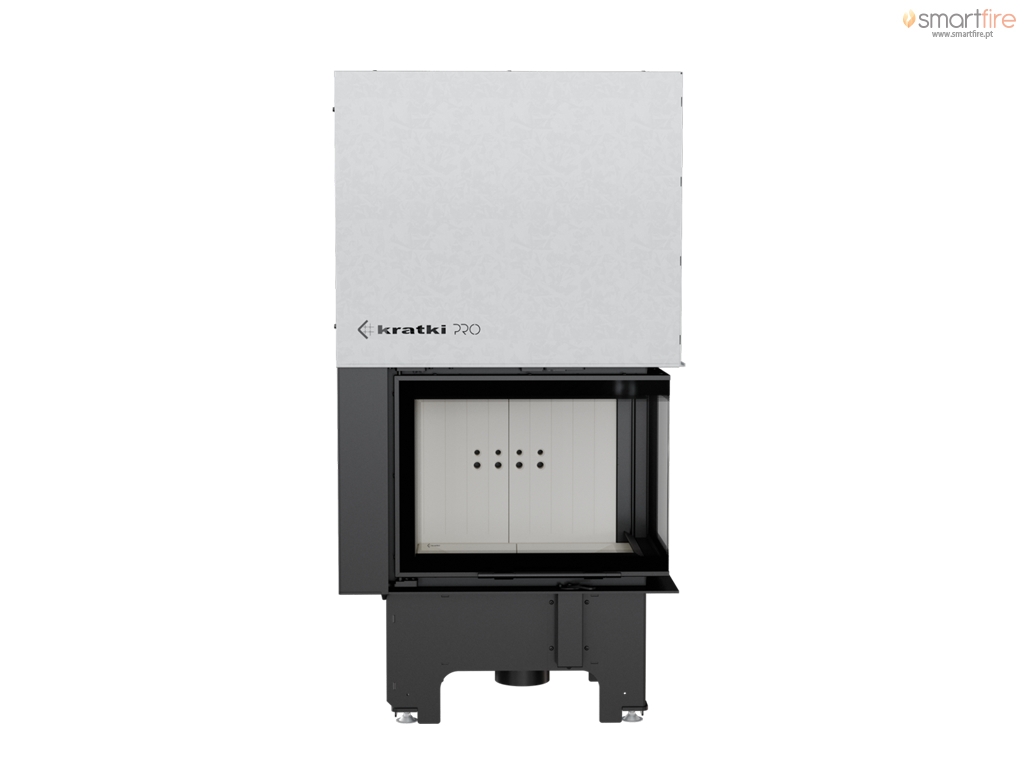 • A lareira está equipada com uma única janela de vidro decorativa, que lhe confere um aspecto elegante e moderno. O uso desta solução amplia visualmente a frente do cartucho e enfatiza a visão do fogo.