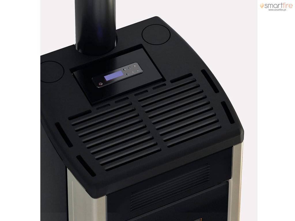 Inclui Wi-Fi integrado para controlo remoto. É versátil, podendo ser instalada com saída de fumos superior ou traseira.