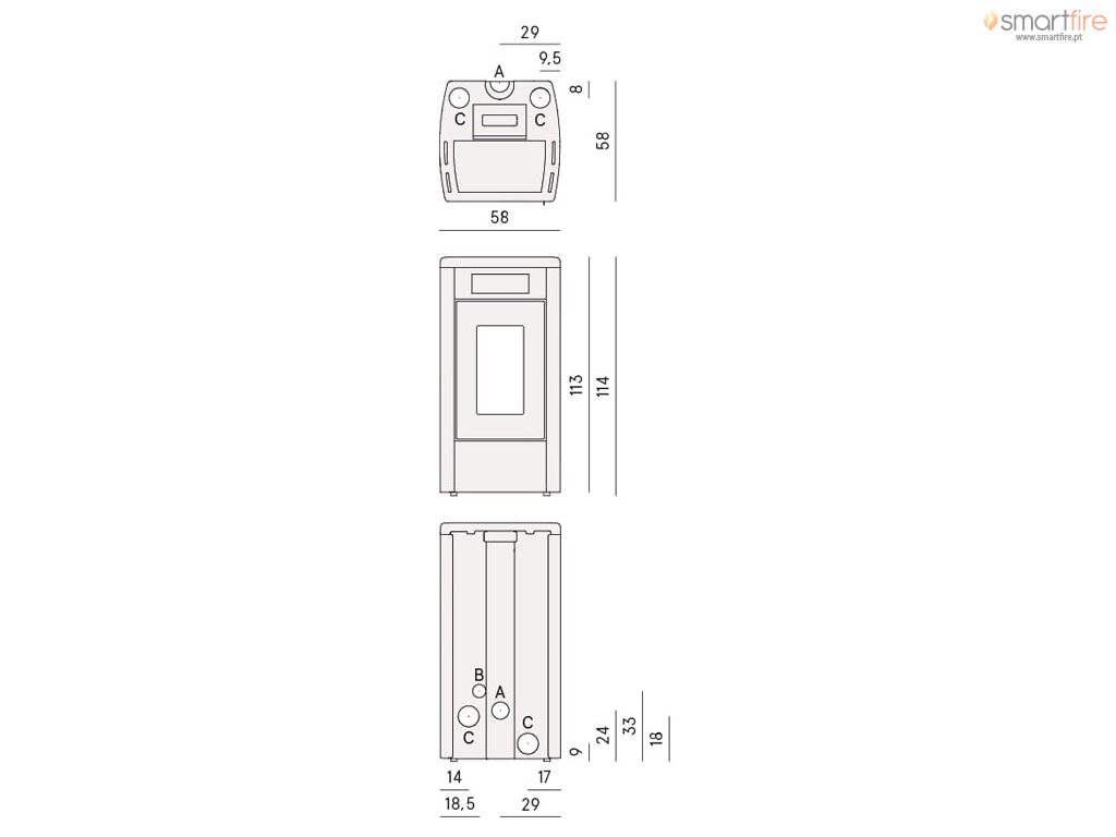 Os equipamentos de e acessórios para aquecimento de madeira e pellets devem ser instalados de acordo o manual de instruções do fabricante e de acordo com as normas vigentes. A sua instalação deve ser realizada por um profissional sob pena de perda das garantias e exclusão da nossa cobertura de responsabilidade.