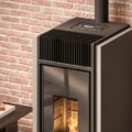 Esta salamandra ventilada, de 7 Kws, está equipada com uma saída de fumos coaxial integrada. Quando está desligada, o Magic Glass escurece, transformando o aparelho numa peça decorativa elegante.