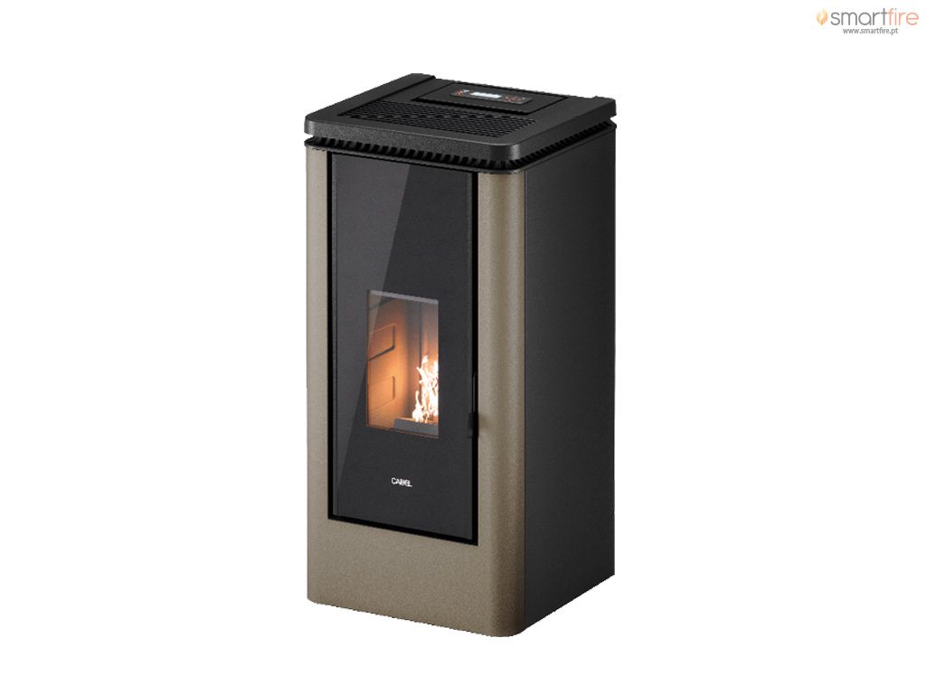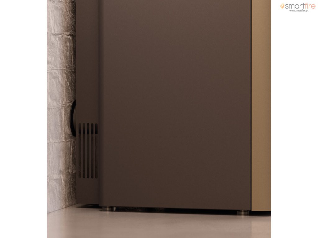 Canalizável com um design moderno e linhas simples. Possui uma grande porta de vidro e topo em ferro fundido. A nova tecnologia "FLEXIT" oferece uma maior flexibilidade na saída de fumos e tubagem.