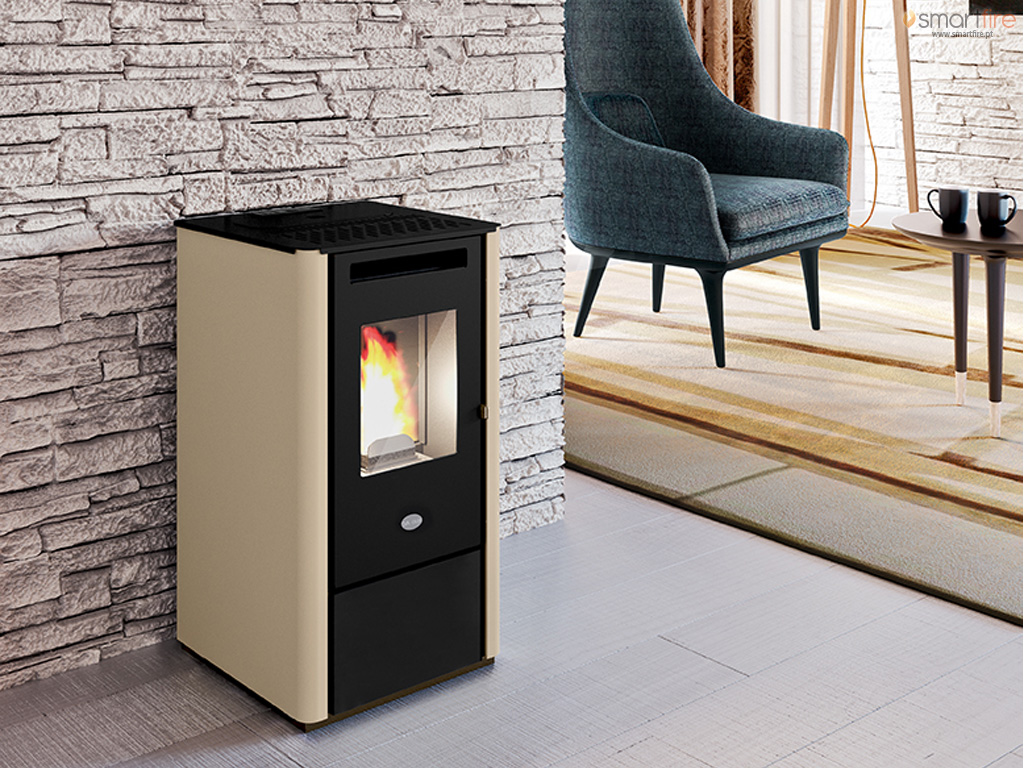 A Salamandra a Pellets Kali 8 kW enquadrando-se perfeitamente em qualquer ambiente dada a sua diversidade de cores.