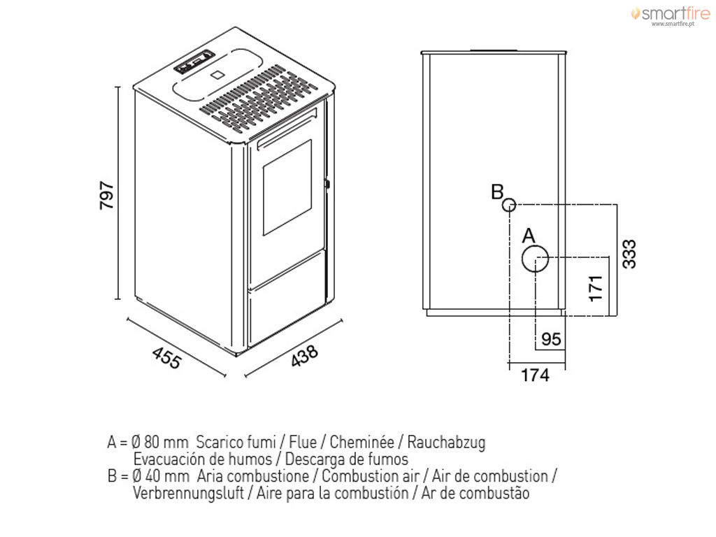 Consumo de pellets: max 2,0 kg/h – min 0,6 kg/h