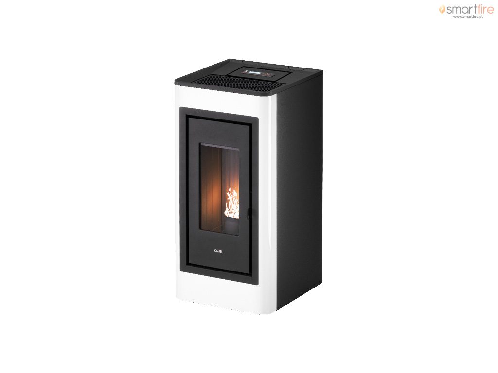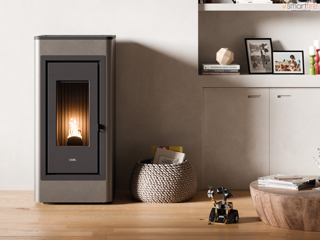Uma nova salamandra a pellets canalizável, com ampla porta em vidro, topo de design inovador e uma grande variedade de acabamentos, que a tornam facilmente adaptável a qualquer ambiente.