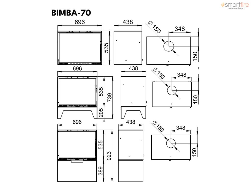 A salamandra Bronpi Bimba 70 é construída em aço, pintada com tinta anticalórica resistente a 650ºC. Com interior da câmara de combustão em vermiculite. Possui uma grelha em fundição removível. A salamandra Bronpi Bimba 70 destaca-se pelo vidro serigrafado e pela ventilação de série. É um equipamento que prima pela versatilidade dado que tem inúmeras hipóteses de instalação.