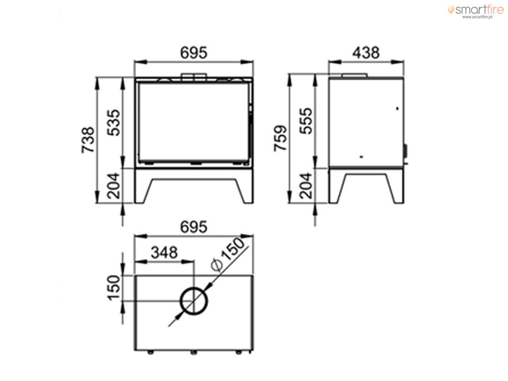 Medida do interior da salamandra : 580 x 287 x 306 mm