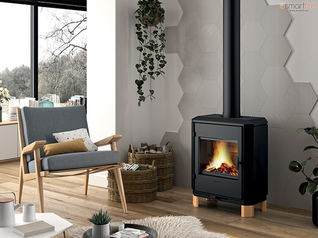 Um rendimento de 70% significa que o equipamento consegue aproveitar 70% da energia contida na lenha para o aquecimento ambiente, ou seja, conseguirá com muito menos combustível produzir a mesma quantidade de calor. De acordo com as normas CE de classificação de equipamentos de calor, um aparelho de 5kW com 75% de rendimento – classe de eficiência 1 – irá consumir cerca de 1,6 kg de lenha por hora para o aquecimento de uma divisão de 35 m2.