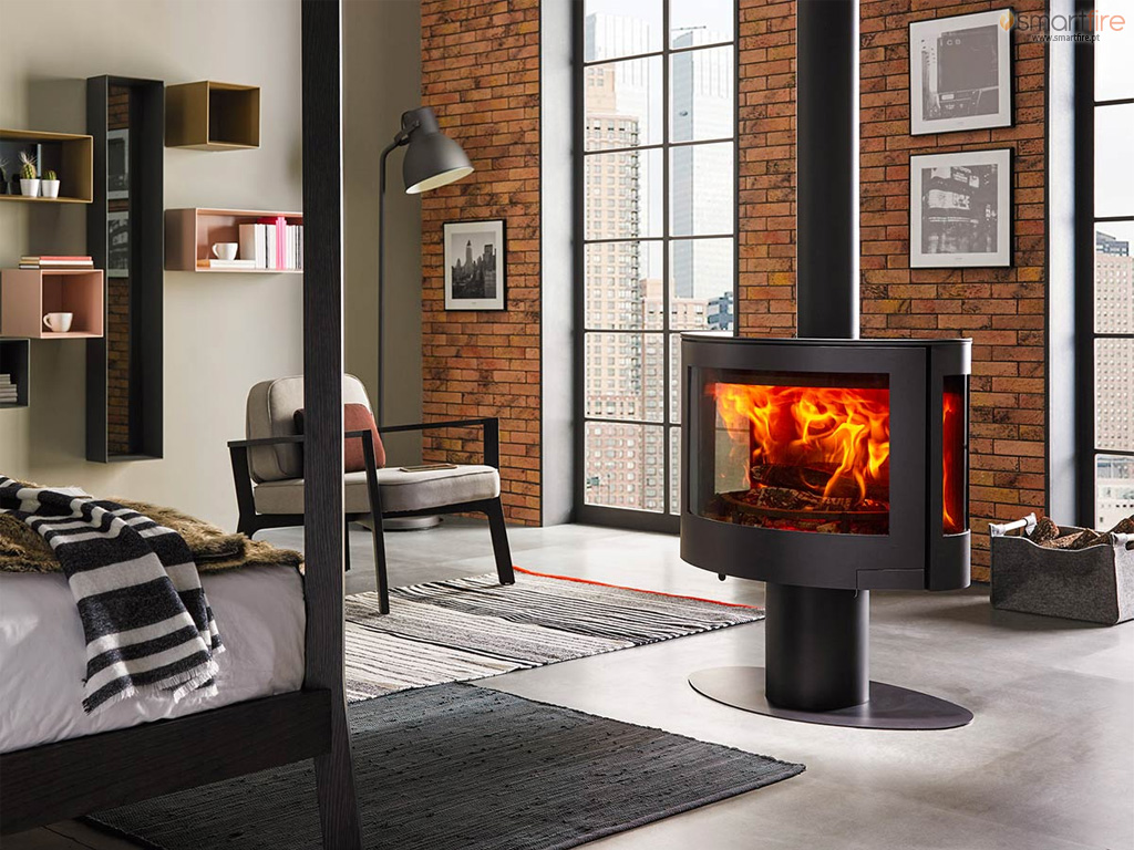 Salamandra a lenha num estilo moderno e conforme as normas de Ecodesign.