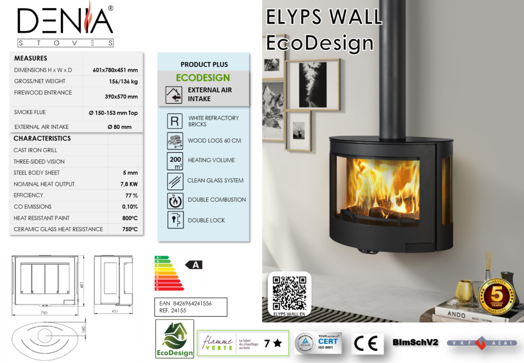 Caraterísticas da Salamandra a Lenha Elyps Wall - Denia
