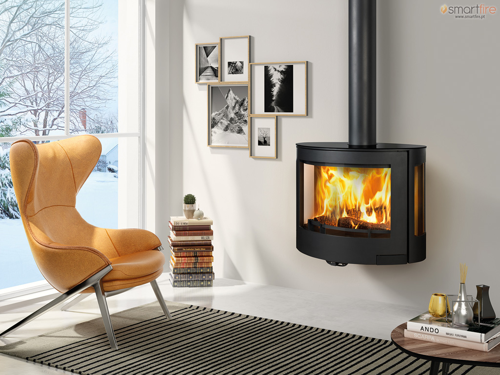 Salamandra a lenha num estilo moderno e conforme as normas de Ecodesign.