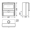 Medidas: 879 altura x 857 largura x 469 mm profundidade