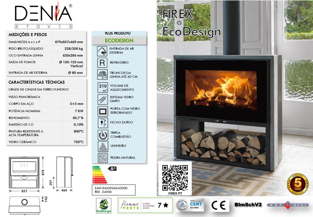 Caraterísticas da Salamandra a Lenha Firex - Denia