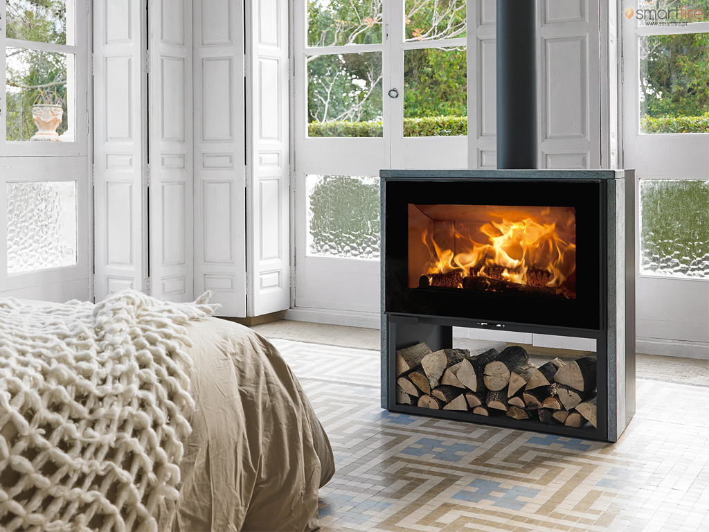 Salamandra a lenha num estilo moderno e conforme as normas de Ecodesign.