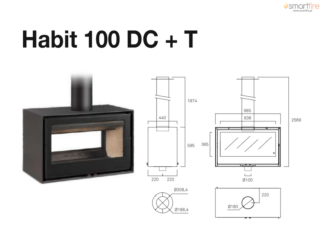 Características da salamandra a lenha Habit 100 DC + T - Rocal