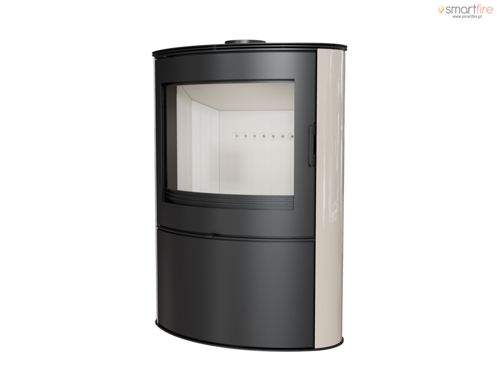- DESIGN MODERNO Design de estilo retro - ladrilhos brilhantes de formato grande. O espaçoso vidro frontal combinado com a grande câmara de combustão influencia significativamente a visão atractiva do fogo.