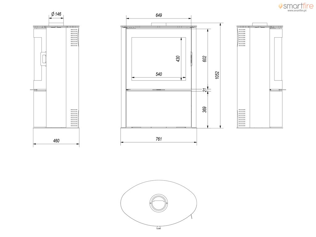 - USO CONFORTÁVEL Grelha móvel e gaveta para cinzas permitem manter o fogão limpo. O vidro permanece limpo graças ao sistema de vidro limpo. A cortina de ar separa o vidro da câmara. Então não fica sujo.