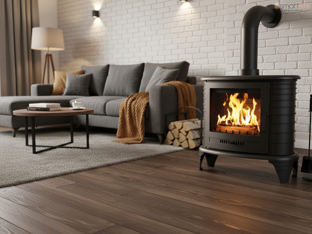 Um rendimento de 70% significa que o equipamento consegue aproveitar 70% da energia contida na lenha para o aquecimento ambiente, ou seja, conseguirá com muito menos combustível produzir a mesma quantidade de calor. De acordo com as normas CE de classificação de equipamentos de calor, um aparelho de 5kW com 75% de rendimento – classe de eficiência 1 – irá consumir cerca de 1,6 kg de lenha por hora para o aquecimento de uma divisão de 35 m2.