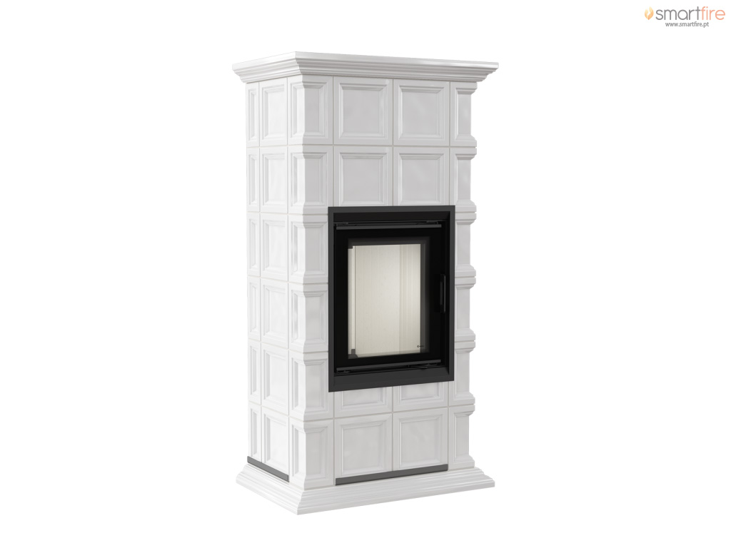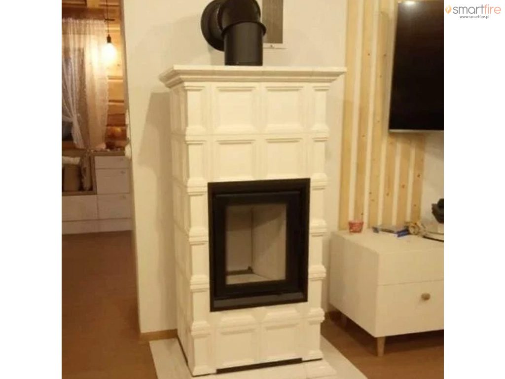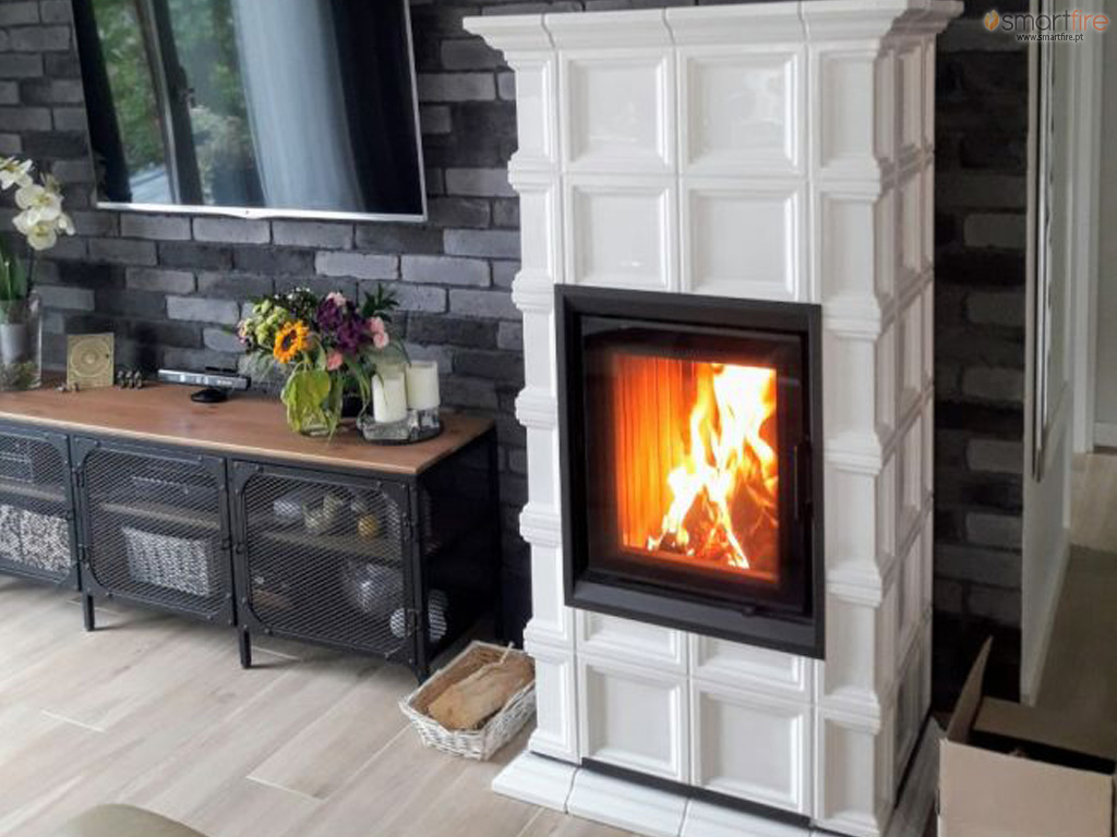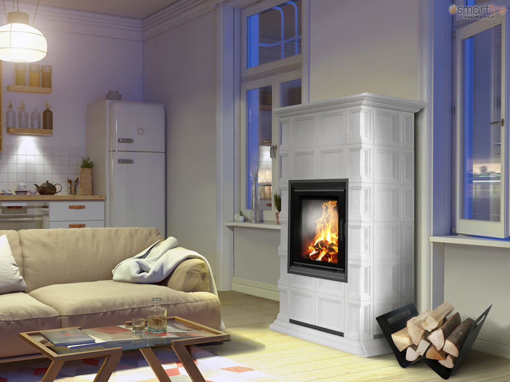 A Salamandra Kratki Nadia em branco creme forrada a faiança torna-a um elemento decorativo ao mesmo tempo que proporciona conforto.
