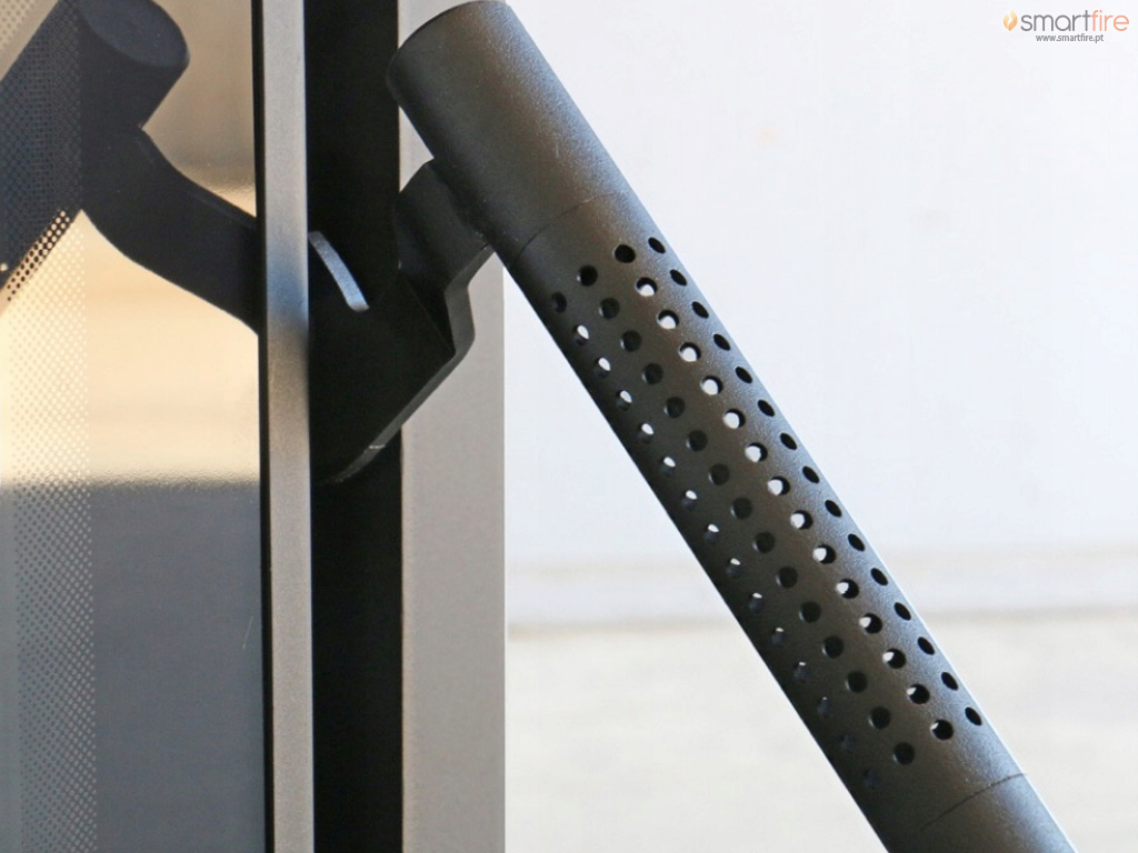 - Há um sistema de ar triplo da câmara de combustão. O ar primário que permite o início do fogo é fornecido sob a grelha. Ar secundário - proporcionando queima económica e ecológica é fornecida por orifícios na parede posterior. Além disso, este inserto está equipado com Clean Glass System (cortina de ar), para que o ar seja fornecido directamente ao vidro através de um sistema de canais localizados nas laterais da lareira. Desta forma, o oxigénio é fornecido para a parte superior da câmara de combustão, onde ocorre a pós-combustão dos gases produzidos durante a combustão da madeira. Ao mesmo tempo, reduz as emissões nocivas de CO para a atmosfera.